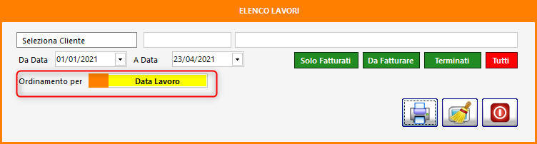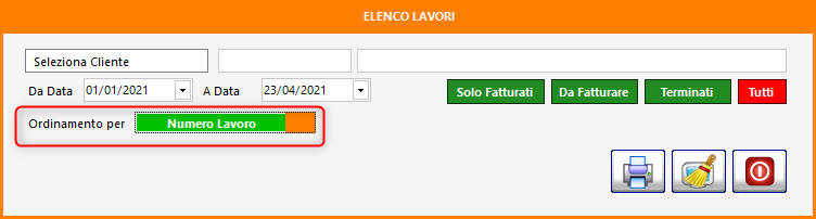 Nella stampa elenco lavori č stata implementata la possibilitą di ottenere la stampa ordinata per numero lavoro e per data lavoro