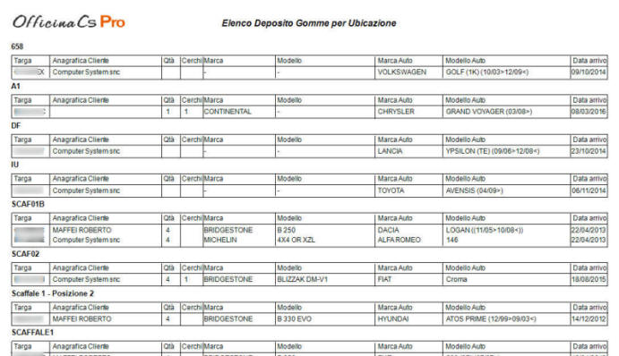 Implementata nuova stampa di elenco deposito gomme per ubicazione