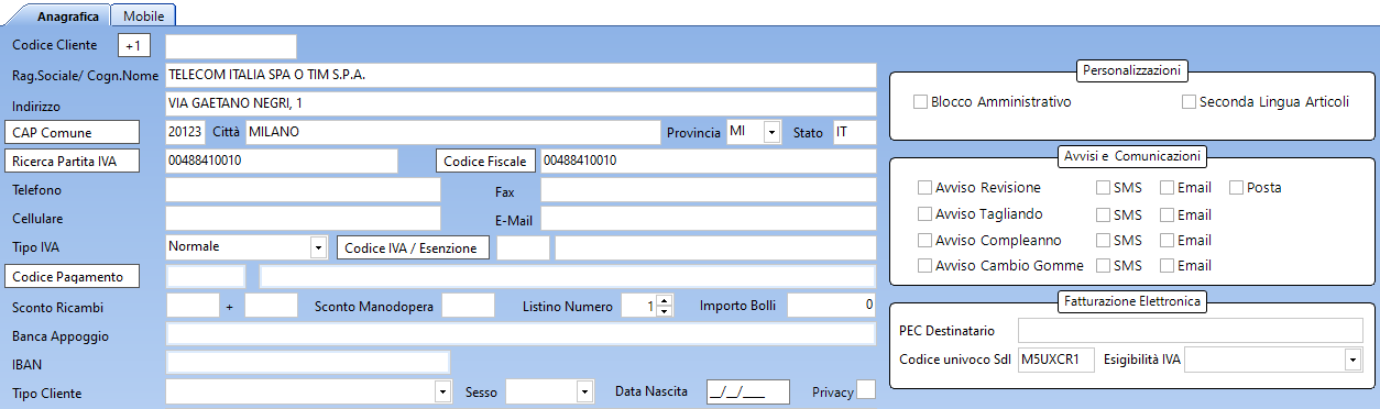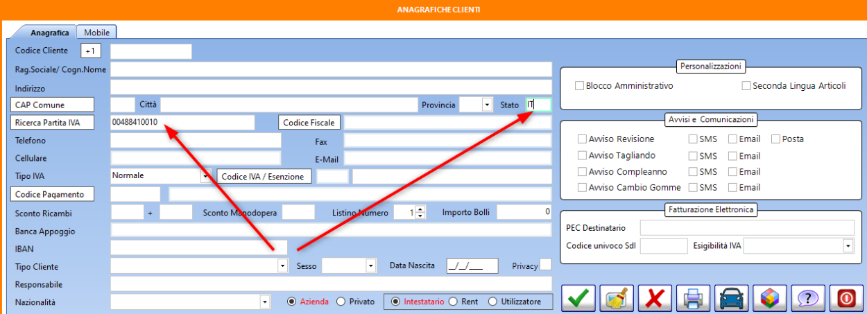 Gestione Anagrafica Clienti: inserire la partita iva e lo stato di appartenenza
