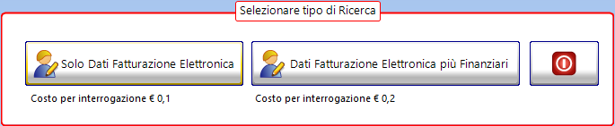 Cliccare sul tasti di Ricerca Partita Iva, vengono visualizzate due tipologie di ricerca, una base che riguarda i soli dati per la fatturazione elettronica e una composta da dati base più i dati finanziari: quest'ultima informazione è disponibile solo dalle partite iva riguardanti le società di capitali.